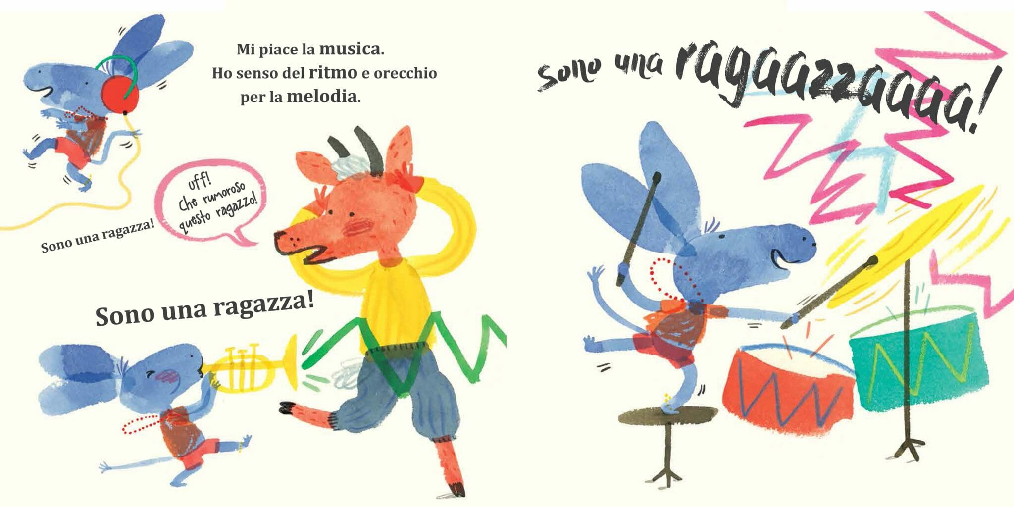 Un altro esempio è il libro illustrato dell’autrice irlandese Yasmeen Ismail, Sono una ragazza!, edito da EDT e da poco in libreria. Nell’opera, la storia di un piccolo asinello che si diverte e gioca con gli animaletti suoi coetanei e non smette mai di ricordare che è un ragazza.