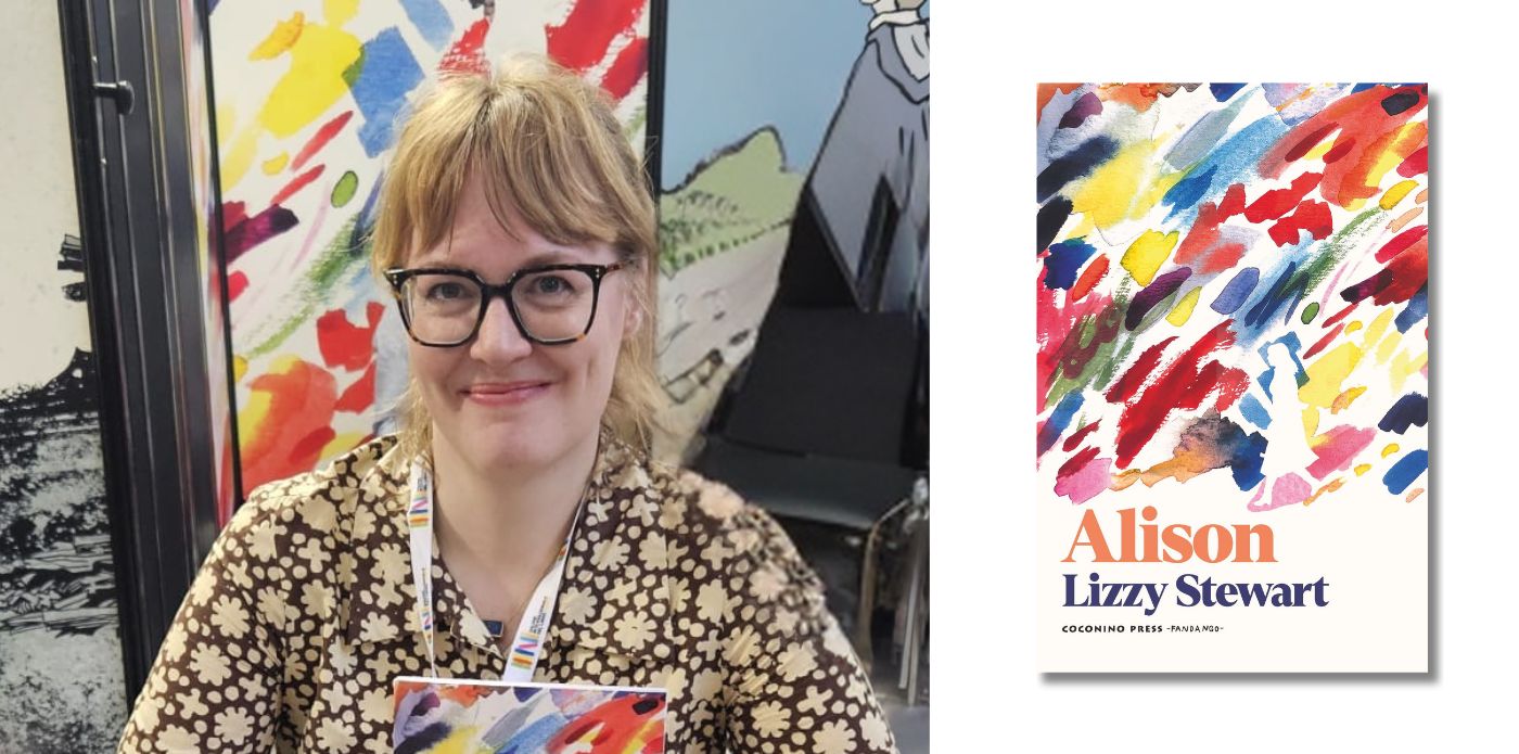 Lizzy Stewart è un’illustratrice diplomata all’Edinburgh College of Art e oggi vive a Londra. Alison è il suo esordio nella narrativa a fumetti, pubblicato nel 2022 da Serpent’s Tail e tradotto da Claudia Durastanti per Coconino Press. Il libro è un esperimento visuale che alterna fumetto, testo e illustrazione: la narrazione si dilata attraverso tavole “mute”, o in cui i dialoghi sono rarefatti, portando il lettore in una bolla ovattata circondata dal fragore di una Londra degli anni ‘60 e ’70, fatta di feste private e mostre d’arte.