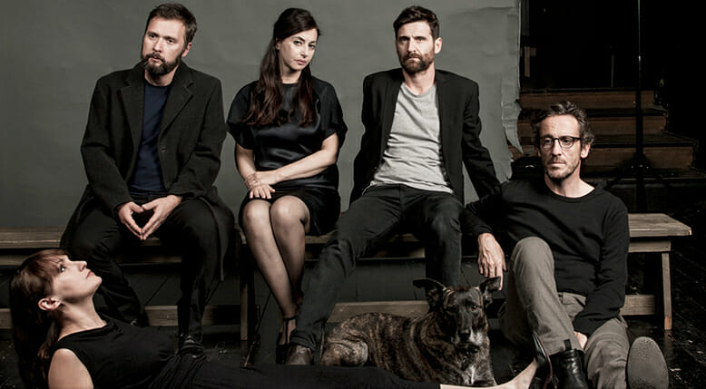 La pienezza/vuoto di tempo (quello impiegato nella zona d’ombra di una vita inventata priva di una vita vera, in attesa di tornare in scena nel ruolo di facciata) è qui, sulle tavole di un palcoscenico nero, ancor prima della paura del tempo, un horror vacui. Sì, perché questa lettura scenica peripatetica e densa – per regia, musiche, luci, coreografie dei movimenti, concezione registica, molto di più di una mera selezione del testo ma un vero e proprio spettacolo che concentra il libro in 70 minuti serrati – lavora prepotentemente sullo spazio. In un palco allestito in diretta, riempito gradualmente di una scenografia indiziaria, e smontato sotto gli occhi degli spettatori, tre uomini e due donne con in mano quasi sempre il testo di Carrère, inscenano una danza (macabra) complessa e articolata, attraverso le parole dell’autore, intorno al fantasma di Jean-Claude Romand e a questo strano assonante e geniale roman che lo scrittore francese traccia guardando il “mostro” e, senza reticenza, guardandosi allo specchio.