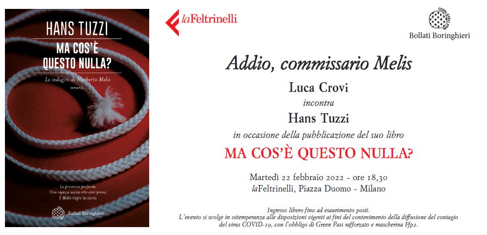 L’AUTORE – L’AUTORE – Hans Tuzzi è autore – oltre che di saggi sulla storia del libro e sul suo mercato antiquario, e del romanzo Vanagloria (2012) – dei celebri gialli ambientati a Milano che hanno come protagonista il commissario Melis: Il maestro della Testa sfondata (2002 e 2016), Perché Yellow non correrà (2005 e 2016), Il principe dei gigli (2005 e 2012), Casta Diva (2005 e 2013), Fuorché l’onore (2005 e 2017), La morte segue i magi (2009 e 2017), L’ora incerta fra il cane e il lupo (2010 e 2017), Un posto sbagliato per morire (2011), Un enigma del passato (2013 e 2017), La figlia più bella (2015), La belva nel labirinto (2017), La vita uccide in prosa (2018) e Polvere d’agosto (2019). È autore anche della trilogia dedicata all’agente segreto Neron Vukcic: Il Trio dell’arciduca (2014), Il sesto Faraone (2016) e Al vento dell’Oceano (2017). Tutti i suoi libri sono pubblicati da Bollati Boringhieri, che dopo aver proposto un anno fa Nessuno rivede Itaca, porta in libreria Ma cos’è questo nulla?, l’ultimo romanzo della serie con Melis, a 20 anni dalla prima inchiesta: Il Maestro della Testa sfondata.