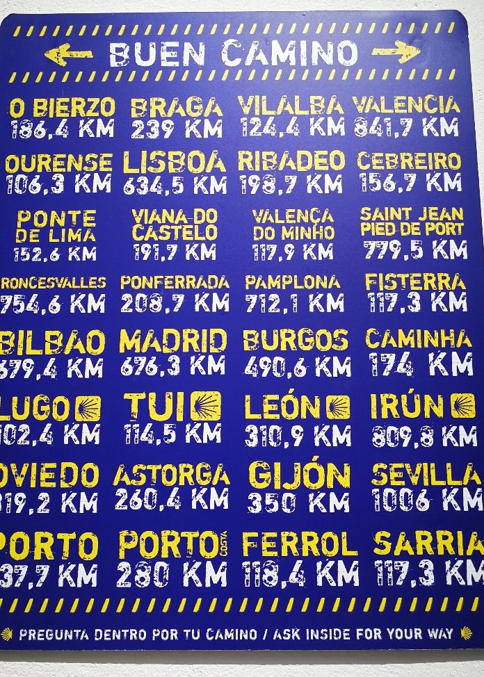 La freccia è ovunque: sui muri di strade e case, su recinzioni e alberi, agli incroci delle vie. A dispetto dell’antichità del Cammino, è un simbolo recente. Debuttò nel 1984 quando il curato del borgo di O Cebreiro, Elías Valiña, vedendo i pellegrini che si smarrivano lungo il percorso, pensò di segnalarlo dipingendo la freccia gialla lungo la rotta francese, da Roncisvalle alla Galizia.