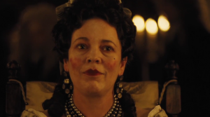 Si crea un triangolo femminile composto da figure profondamente diverse tra loro. Al vertice c’è Anna, la regina (Olivia Colman): infantile, debole, viziata, infelice e capricciosa al limite della follia. Ai due lati, a contendersi il ruolo di favorita di sua maestà , ci sono Sarah e Abigail. Entrambe desiderano la stessa cosa (il potere), ma adottano strategie opposte per ottenerla: il cuore del film, infatti, consiste proprio nel modo in cui le due rivali dispiegano le loro armi di seduzione per raggiungere il proprio obiettivo.