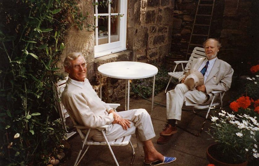 Bradley, dopo essere stato un po’ sbrigativamente liquidato da Russell e dal suo collega di Cambridge George Edward Moore, è scomparso dalla circolazione fino a non molto tempo fa. Ci ha pensato tra i pochissimi altri un filosofo britannico contemporaneo di talento, per lo più ignoto in Italia, a riprendere i suoi argomenti, e lo ha fatto in maniera originalissima. Lui si chiama Thimothy Sprigge, ha insegnato per anni all’università di Edimburgo, dove ha ricoperto la cattedra di Logica e Metafisica (sì, perché praticamente ovunque nel mondo anglosassone esistono cattedre di Logica e Metafisica), dopo aver studiato ed essersi formato ad Oxford sotto la supervisione di A.J. Ayer. L’uomo alla destra col cappello in mano è Sprigge, con John Watling: