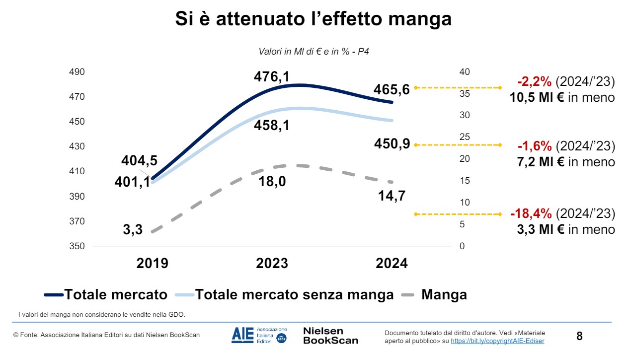 Le ragioni della flessione di inizio 2024: meno novità, rallentamento dei manga e…