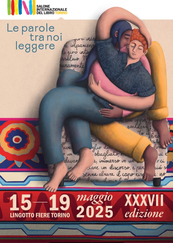 Il manifesto è realizzato dall’illustratrice e animatrice Benedetta Fasson, e “racconta un momento di intimità, due figure che si abbracciano in un’atmosfera calda e raccolta. Trasmettono il valore universale della connessione e della condivisione. In un’ambientazione semplice e accogliente, un salotto che fa casa, si crea uno scenario raccolto e familiare, dove le parole scorrono. A volte profonde, a volte leggere, e si intrecciano nei dettagli: sono lì, nel tessuto della poltrona, in una citazione del libro di Lalla Romano, Le parole tra noi leggere. Attraverso una storia, un disegno, una parola, creiamo luoghi per raggiungere e mantenere la leggerezza, li arrediamo per somigliarci, accogliere chi vogliamo, trovare un legame. Il Salone del Libro invita lettrici e lettori a tornare ad abitare questo spazio insieme alla comunità del libro”.