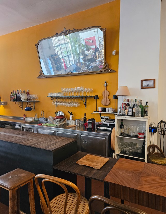 L’ingresso passa attraverso un piccolo cortile con un maestoso gelsomino e, prima ancora di entrare, si viene accolti dalle note di un pianoforte, di un violino o di un’intera orchestra, alle prese con le prove per il prossimo concerto, oppure un brano di musica classica proveniente dallo stereo; da MaMu, il sottofondo musicale non manca mai e, nel varcare la soglia si ha la sensazione di aver viaggiato indietro nel tempo, fino a un’epoca in cui le giornate erano meno frenetiche.