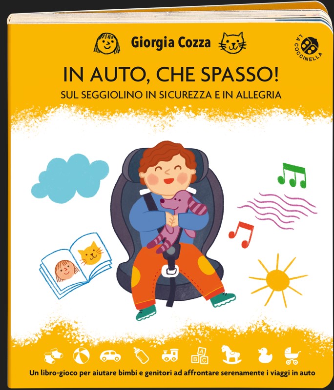 Cosa fare se il bambino non ama viaggiare in auto? Se quando lo facciamo sedere nel suo seggiolino urla e piange? Molti bimbi nei primi anni di vita si lamentano, protestano e non stanno volentieri seduti nel loro seggiolino… In libreria per La Coccinella un libro-gioco perfetto per aiutare bimbi e genitori ad affrontare con più serenità i viaggi in auto: Giorgia Cozza firma infatti In auto, che spasso! – Sul seggiolino in sicurezza e in allegria, con le illustrazioni di Ilaria Faccioli.