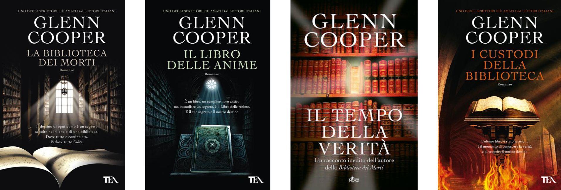Partiamo proprio dal debutto di Glenn Cooper, dal quale tra il 2009 e il 2012 è nata una trilogia composta da La Biblioteca dei Morti (traduzione di Gian Paolo Gasperi), Il Libro delle Anime (traduzione di Gian Paolo Gasperi) e Il tempo della verità (traduzione di Annalisa Crea), quest’ultimo uscito solo in ebook e contenente un prequel dei due volumi precedenti.