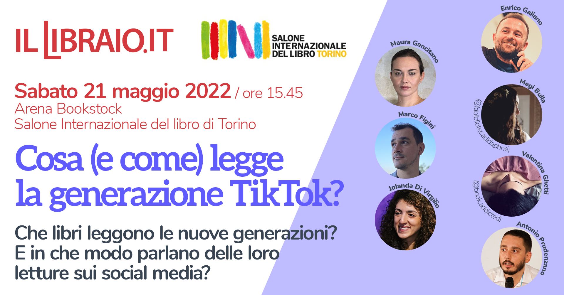 L’incontro vede la partecipazione di Megi Bulla – @labibliotecadidaphne, Marco Figini (responsabile editoriale di Magazzini Salani), Enrico Galiano (scrittore, insegnante e assiduo collaboratore del nostro sito), Maura Gancitano (autrice e co-fondatrice del progetto Tlon), e Valentina Ghetti – @book.addicted (anche insegnante, oltre che attivissima su TikTok). A moderare il panel, Jolanda Di Virgilio (redattrice ilLibraio.it e autrice) e Antonio Prudenzano (responsabile editoriale ilLibraio.it).