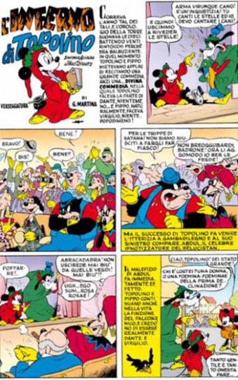 Topolino aggiunge così un nuovo mattone al castello delle celebri parodie, inaugurato nel lontano 1949 dallo sceneggiatore Guido Martina, il primo ad avere l’idea di utilizzare Topolino, Paperino e Pippo per ri-raccontare i grandi capolavori della letteratura mondiale a un pubblico vasto e giovane. Storie come L‘Inferno di Topolino, Paperino Don Chisciotte, Paperino e il conte di Montecristo, Paperopoli liberata sono solo alcune delle più celebri sceneggiature firmate da Martina, piccoli gioielli che, come per magia, riuscivano a conciliare perfettamente i riferimenti alla trama originaria con l’umorismo di matrice disneyana. Un grande maestro, la cui influenza si sente ancora oggi.