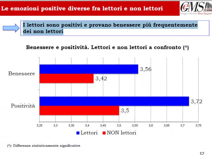 Allo stesso tempo, come conferma quest’altra slide, i lettori sono positivi e provano benessere più frequentemente dei non lettori.