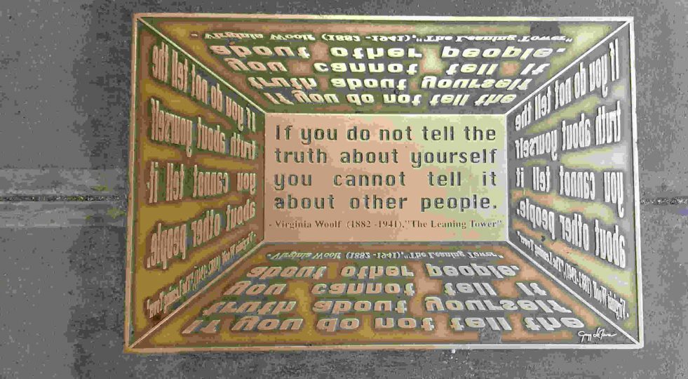 La verità con se stessi è la conditio sine qua non per poter parlare degli altri. Una dichiarazione, quella dell’autrice di Gita al faro e La signora Dalloway, che viene riprodotta in questa lastra come in un gioco di specchi.