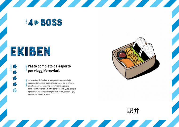 Giochiamo alla scoperta della tradizione culinaria del Sol Levante, con un libro pieno di illustrazioni pop. Organizzato in dieci livelli di difficoltà, in ognuno dei quali si trovano due ricette più un mostro finale da sconfiggere per continuare l’avventura. Dagli amichevoli yakitori e onigiri, fino allo spaventoso “pasto danzante”.